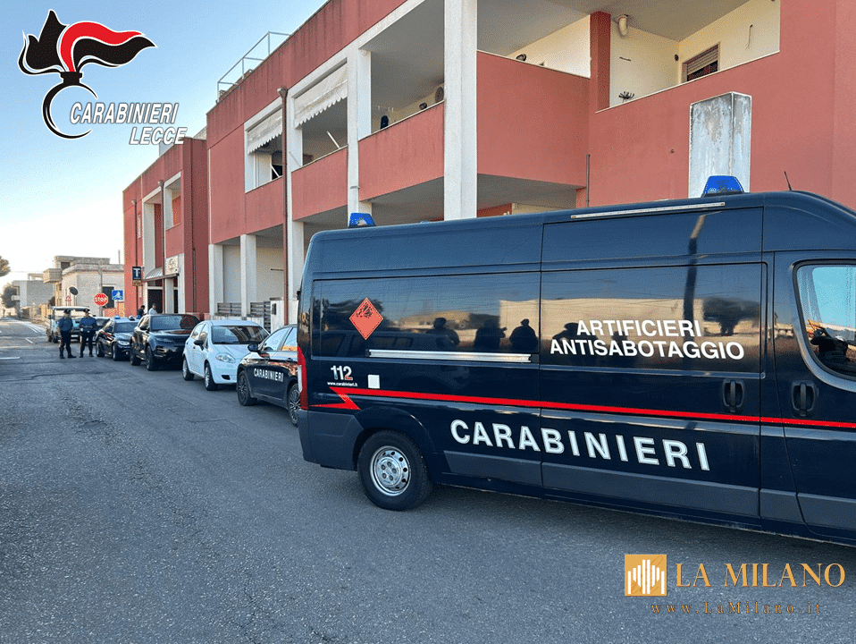 Operazione dei Carabinieri a Lecce: sequestrati 1,5 kg di marijuana, 770 g di hashish, cocaina, denaro, auto rubate e un ordigno artigianale. Arresti e denunce in corso.